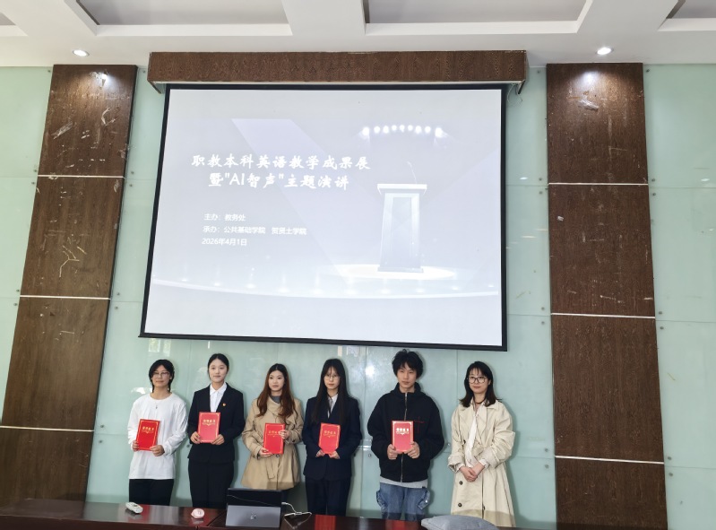 4月1日下午,职教本科英语教学成果展暨“AI智声”演讲比赛在明德楼105报告厅举行。本次比赛由教务处主办,公共基础学院与贺贤土学院共同承办。经初赛选拔,13名选手进入决赛。国际商旅学院副院长吴安萍、职业教育教师培训学院副院长王萌萌、贺贤土学院副院长邱璐轶、公共基础学院党总支副书记孙轶婷、英语教研室主任程亮应邀担任评委,公共基础学院院长周晨、教务处副处长鲁璐等领导莅临指导。